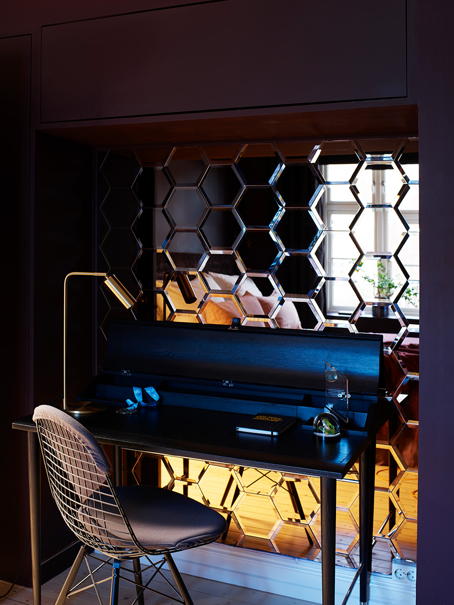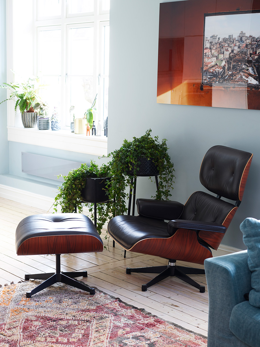 En svenske og en italiener som møttes i Nederland har skapt et lunt hjem til den lille familien på Adamstuen. Med forskjellig smak og meninger om design og interiør ble det Eskes oppgave å skape en helhetlig og felles stil i leiligheten. Ved hjelp av varme fargekombinasjoner og plassbygde løsninger på soverommene og i stuen ble kvadratmeterne optimalt utnyttet. Endelig falt brikkene på plass og hele familien fikk et allrom med stue og kjøkken som alle trives i, mens mor og far fikk et fristed i form av et luksuriøst ”hotellrom” man ikke har lyst å forlate.