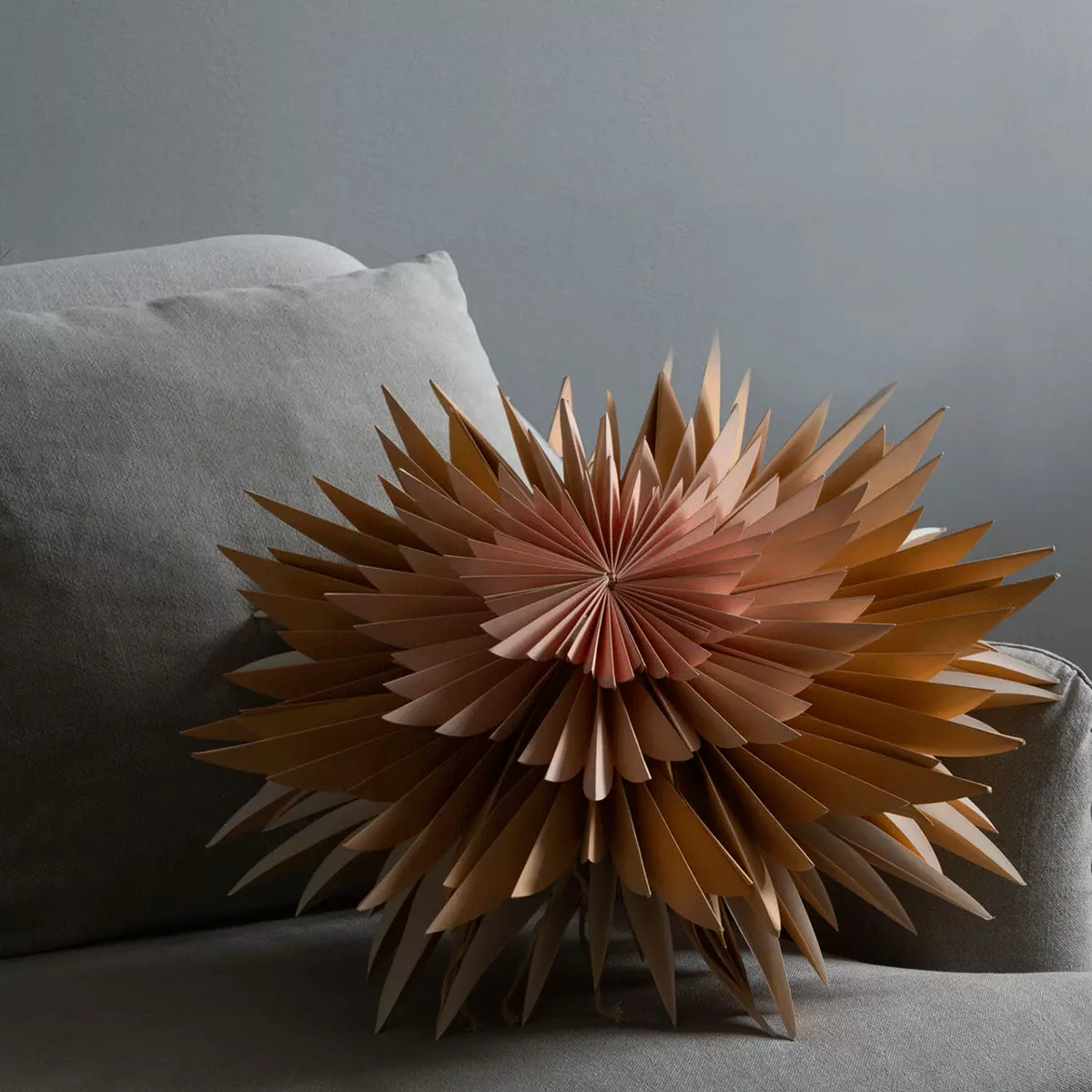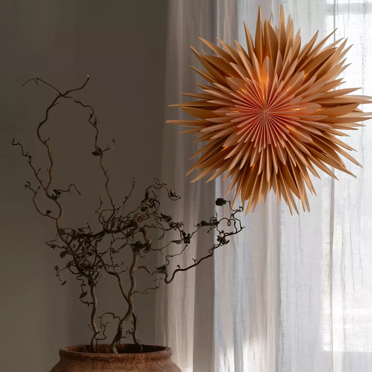 Maja fra Watt & Veke brettes for hånd i tre varme oransje nyanser som gir et mykt, stemningsfullt lys. En elegant adventsstjerne som skaper lun julestemning i hjemmet. Leveres i hvit oppbevaringsboks for trygg lagring mellom sesongene.