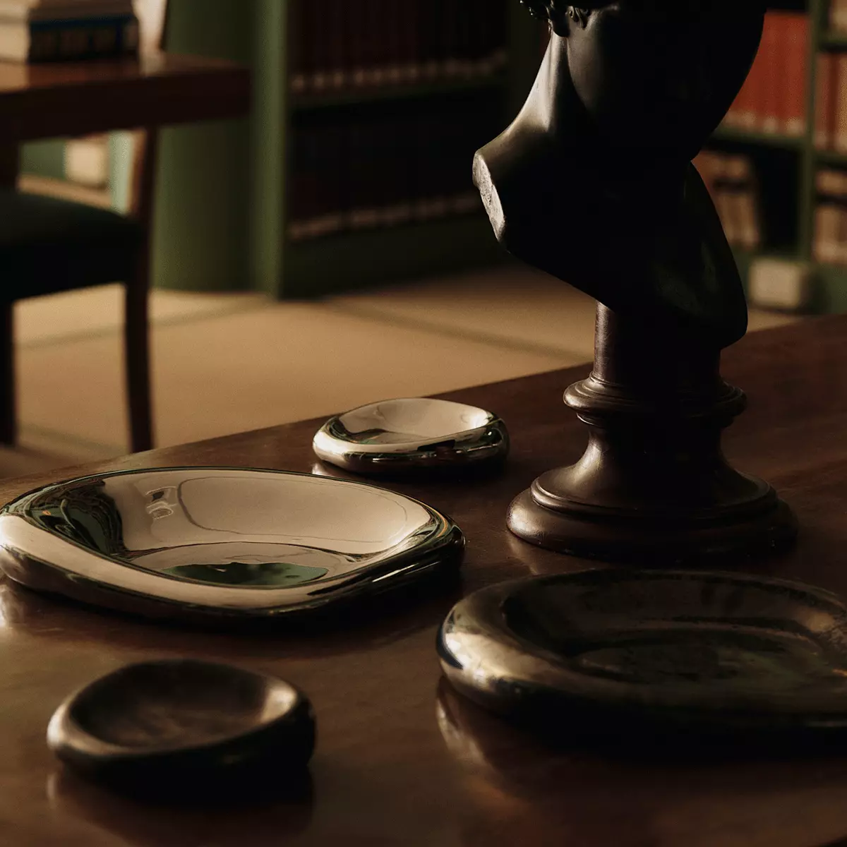 Bellure Fat kombinerer organisk form og kunstnerisk uttrykk. Inspirert av naturens steiner og flytende linjer, gir det et harmonisk og moderne preg til rommet. Den matsikre overflaten gjør det perfekt både som serveringsfat og som dekorativ detalj på bordet.