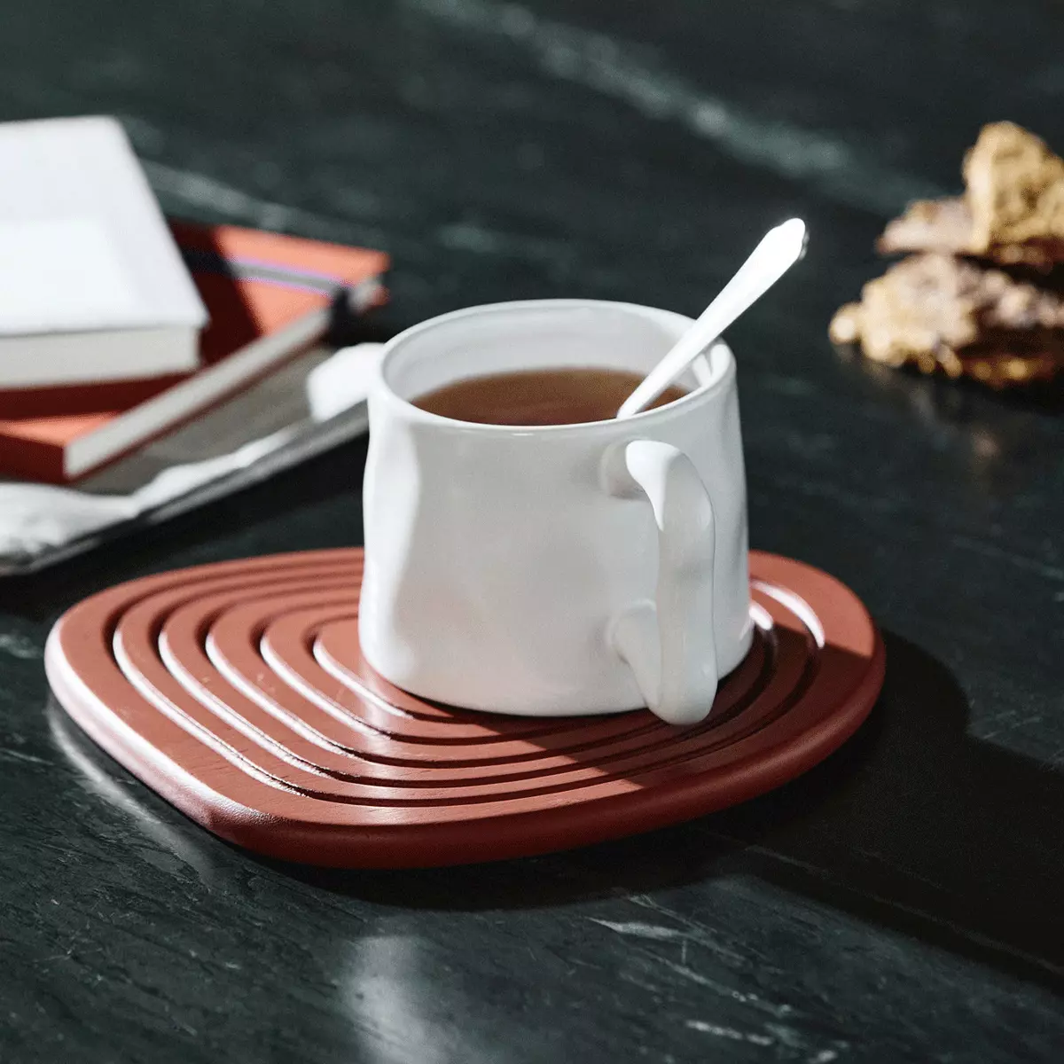 Enoki Coaster er av akasitre, og er designet med fokus på form og materiale. Den myke og organsike formen skaper en dynamisk uttrykk som både beskytter og fremhever borddekkingen. Kommer i fire ulike farger, og er ideell for hverdagsbruk! Drikkebrikkene er varmebestandige, men fargene kan falme over tid.