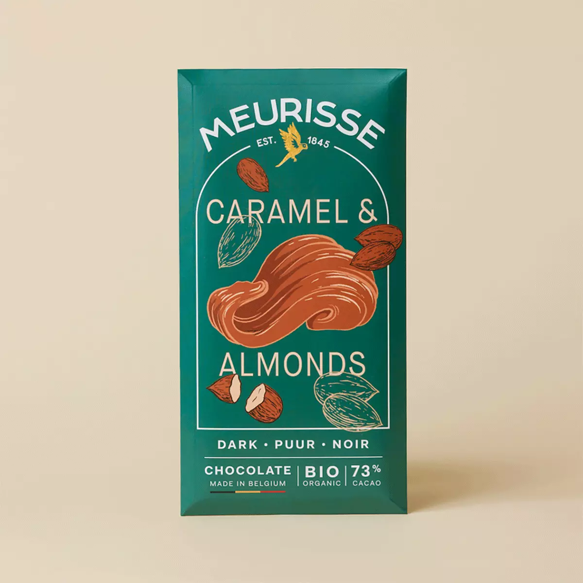 Ingredienser: Kakaomasse*, rørsukker*, kakaosmør*, mandler*, naturlig vaniljepulver* (*fra økologisk landbruk).