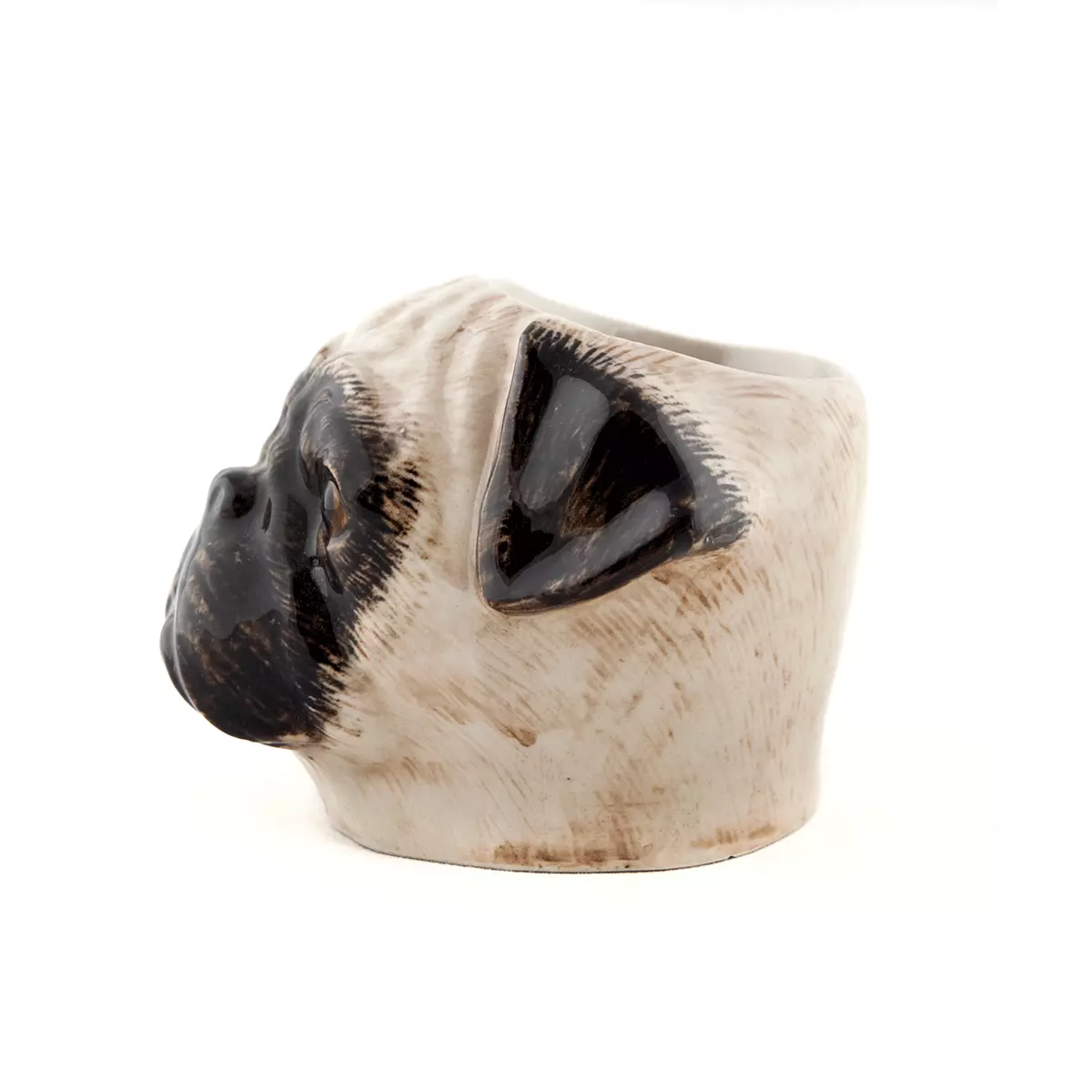 Eggeglass Mops fra Quail Ceramics er et lekent og sjarmerende innslag på frokostbordet, formet som en mopshund i håndmalt keramikk. Med sin uttrykksfulle form og humoristiske design gjør det både nytte og glede, enten det brukes til dagens egg eller som en dekorativ detalj på hyllen. Dette eggeglasset kombinerer britisk design med kvalitets håndverk, og tilfører hjemmet små, unike detaljer med sjel og personlighet.
