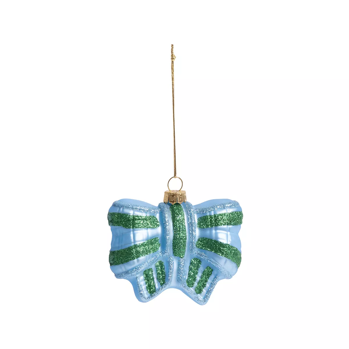 Julepynt sløyfe i fargen blå fra &Klevering. Pynt årets juletre med flotte glitrende julekuler i fine farger.
