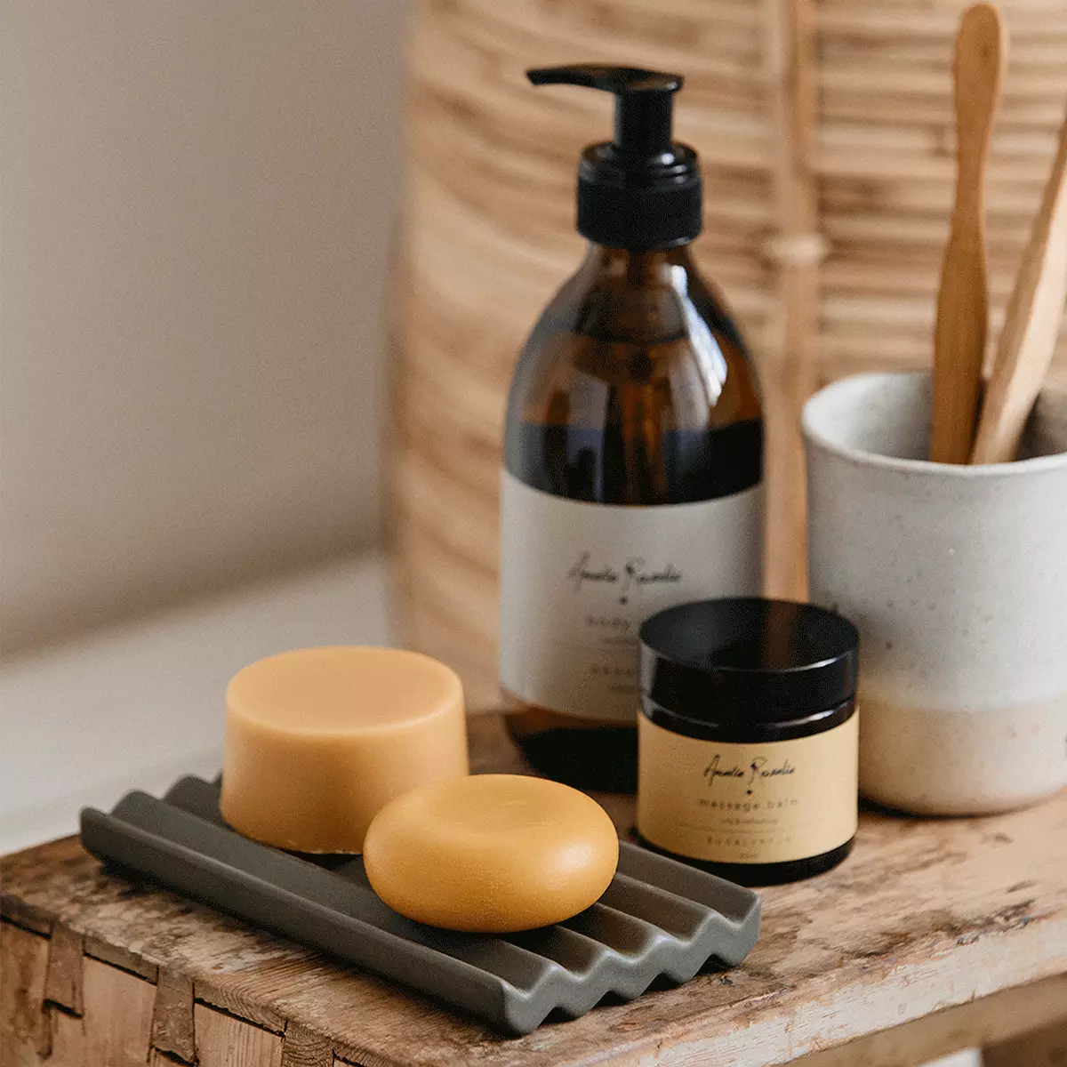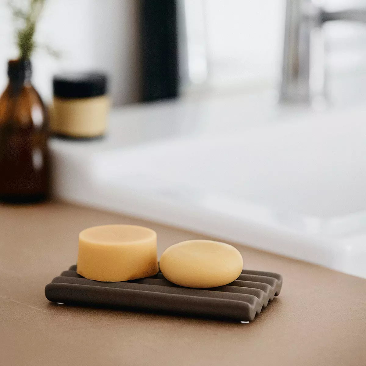 Amalie Rosalie såpeskål Large Taupe er håndlaget i keramikk og skapt for deg som ønsker både funksjon og estetikk på badet. Den rommer to såper samtidig og passer perfekt til kombinasjoner som sjampo og balsam eller håndsåpe og lotion. De gjennomtenkte sporene løfter såpene og gir god lufting, slik at de tørker effektivt mellom bruk og varer lenger. Med sitt rolige, naturlige uttrykk tilfører såpeskålen et harmonisk og tidløst preg til baderommet, samtidig som den er produsert med fokus på bærekraft.