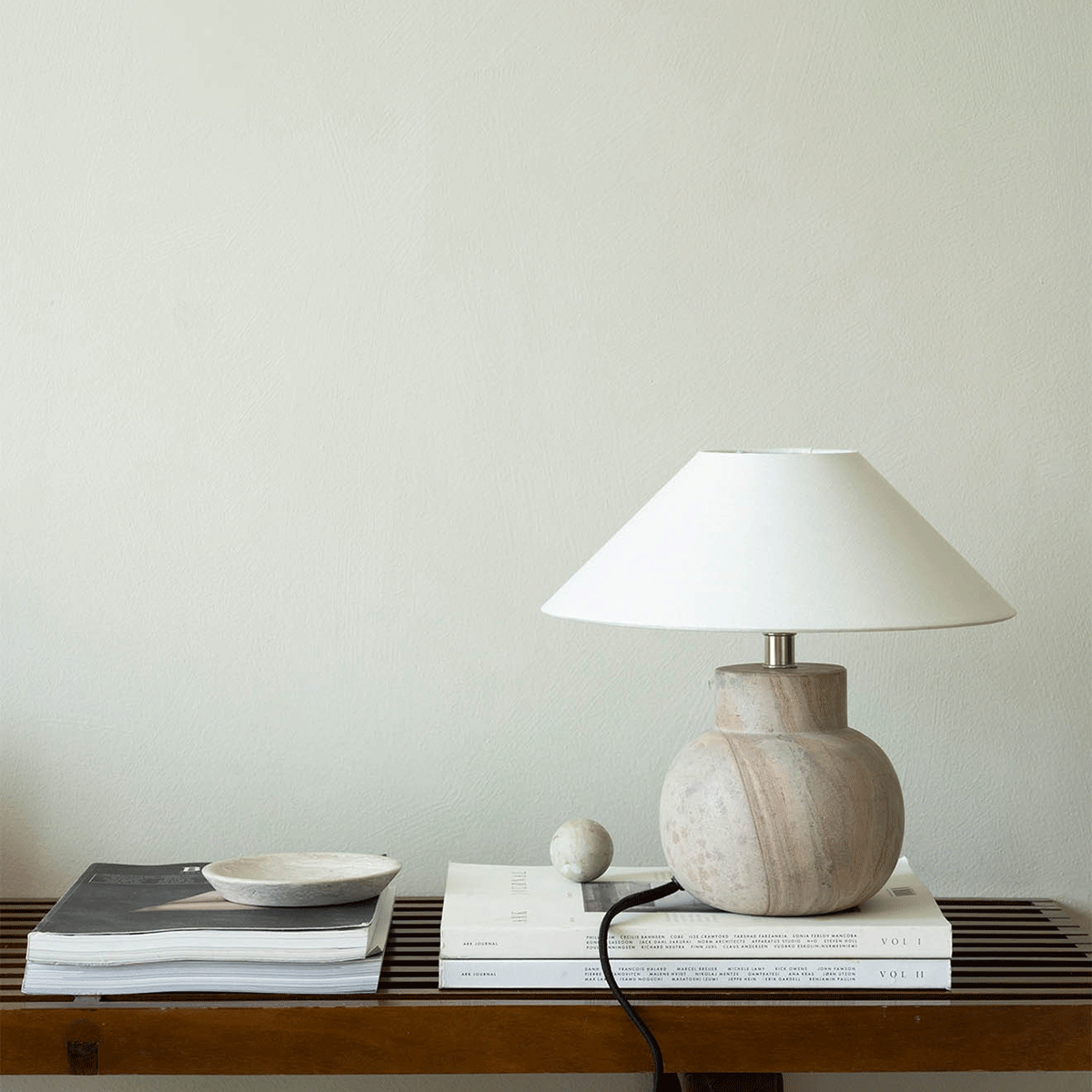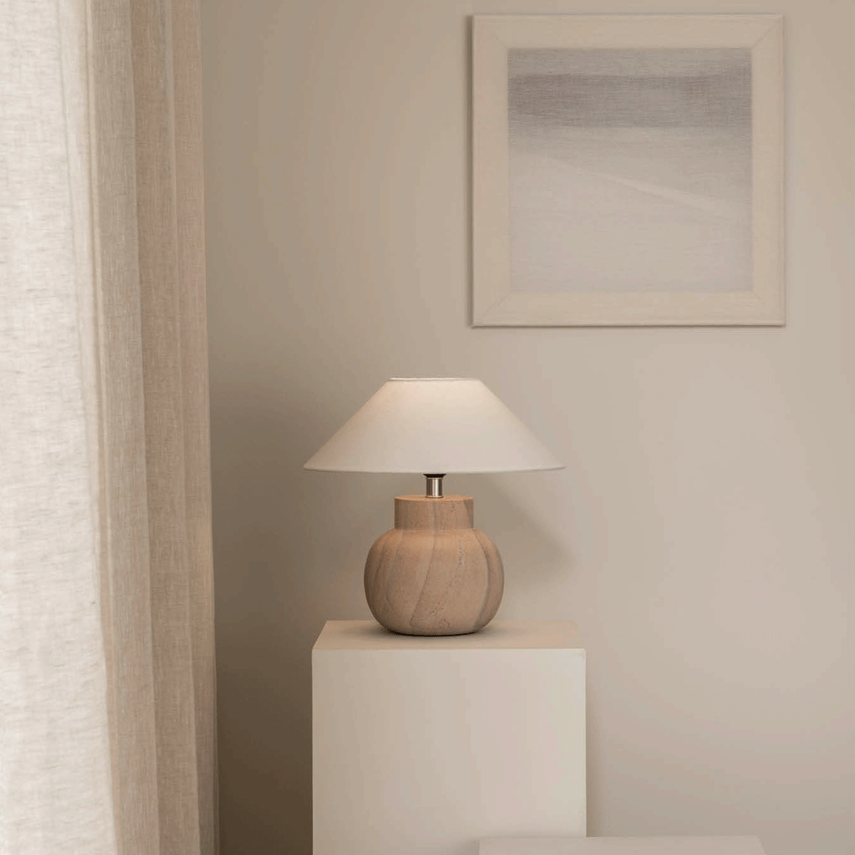 Pella Sandstone bordlampe kombinerer klassisk eleganse med moderne design. Den enkle og stilrene formen fremhever den naturlige skjønnheten i sandstein, og hver lampefot har unike farge- og mønsterdetaljer som gjør lampen helt spesiell. Velg en lampeskjerm som passer din stil for å skape en personlig og harmonisk bordlampe. Den kompakte størrelsen gjør den perfekt for vinduskarmen, sidebordet eller nattbordet. Lampen leveres med svart tekstilledning med bryter, som gir en elegant kontrast til steinen.