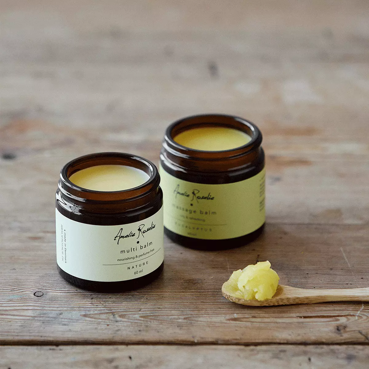 Amalie Rosalie Massage Balm er en rik og pleiende massasjebalm utviklet for ømme muskler og øyeblikk der kroppen trenger ekstra omsorg. Balmen er vannfri og består av nærende oljer og smør av høy kvalitet, som gir optimal og effektiv massasje. Den er formulert med økologisk ekstra virgin olivenolje, økologisk sheasmør, dansk bivoks og vitamin E, og smelter ved kontakt med huden for å danne et beskyttende lag av mykgjørende lipider. Essensiell eukalyptusolje er tilsatt for sin tradisjonelle, beroligende effekt på ømme muskler og for å gi en frisk og oppkvikkende duft som forsterker velværeopplevelsen. Kan brukes etter behov. Produktet inneholder 84 % økologiske ingredienser og består av 100 % ingredienser av naturlig opprinnelse.