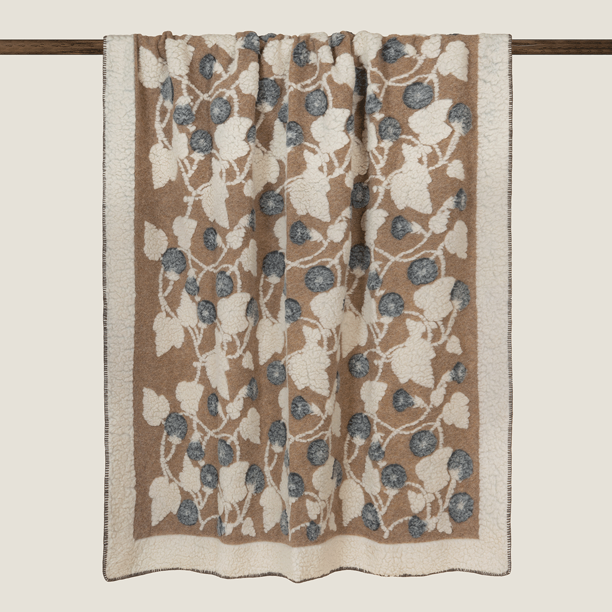 Nydelig pledd fra det italienske merket Frati Home. Pleddet har en flott fargekombinasjon av beige og grå toner og er i alpakkablanding. Det anbefales å rense i perkloretylen. Må ikke tørkes i tørketrommel.