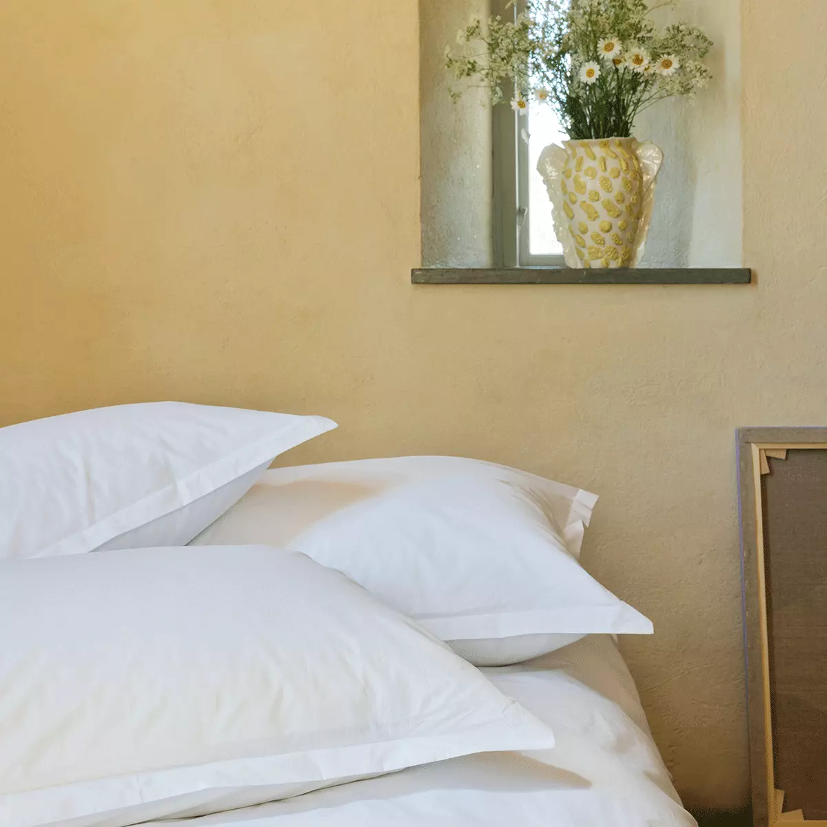Opplev den deilige hotellfølelsen med Mille Notti sitt crispy percale putetrekk i 100 % finkjemmet, økologisk bomull. Den tidløse hvite Pousada-designen har en elegant 3 cm vinge og en praktisk overlapping på baksiden. Percaleveven gir en glatt, sval og luksuriøs følelse som holder seg like behagelig vask etter vask, takket være de lange, sterke bomullsfibrene. GOTS-sertifisert og produsert i Portugal for en kvalitet du kan stole på.
