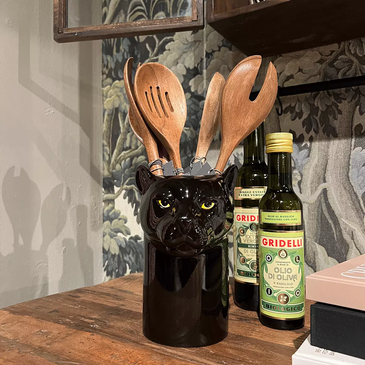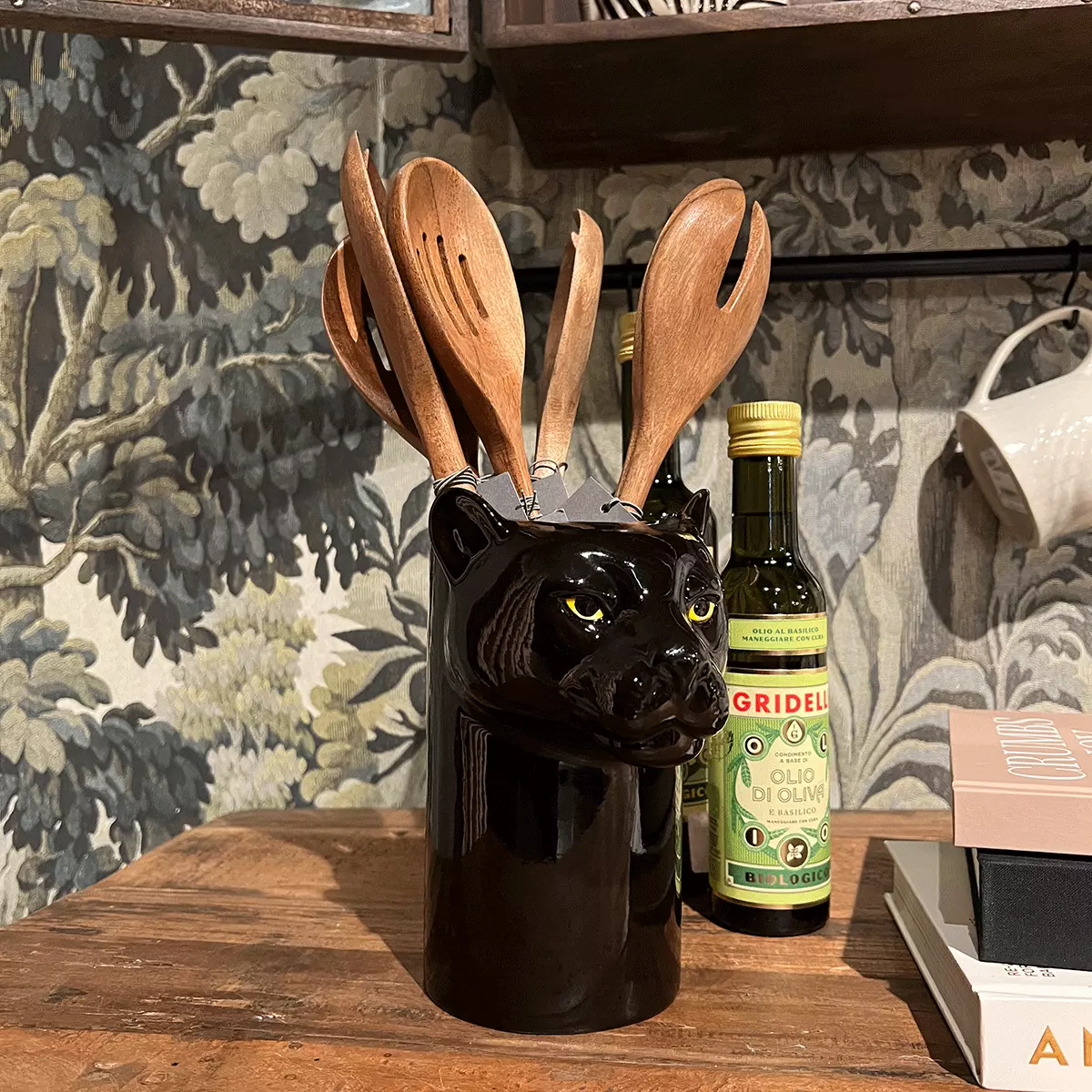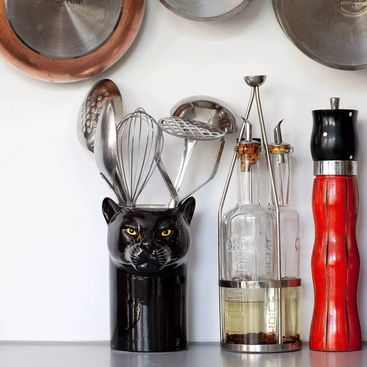 Redskapskrukke Panter fra Quail Ceramics er et lekent og funksjonelt innslag på kjøkkenet, formet som en elegant panter i håndmalt keramikk. Perfekt til oppbevaring av kjøkkenredskaper, samtidig som den tilfører benken eller bordet et unikt og uttrykksfullt preg. Denne krukken kombinerer britisk design med kvalitets håndverk, og gir hjemmet små, karakterfulle detaljer med sjel og personlighet.