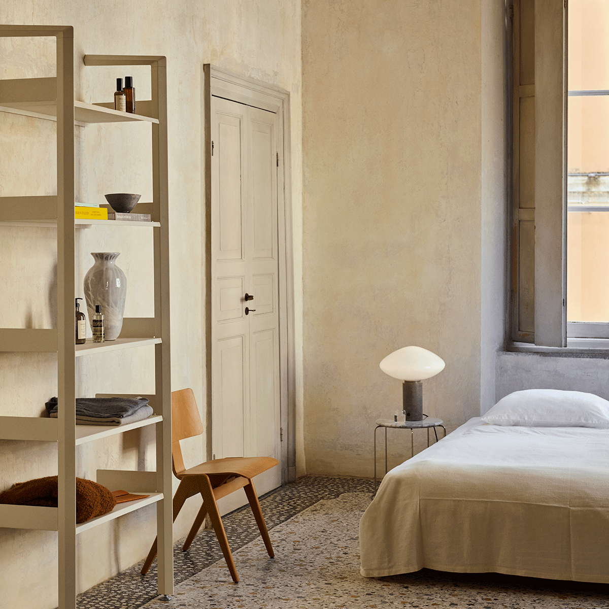 Rombe IF1 Hyllesystem i fargen Alabaster m/Alabaster hyller. Rombe er et modulært hyllesystem skapt for å møte de mange behovene i en moderne livsstil. Med sitt skulpturelle uttrykk fungerer det ikke bare som praktisk oppbevaring, men også som et elegant designelement i hjemmet eller på kontoret.
