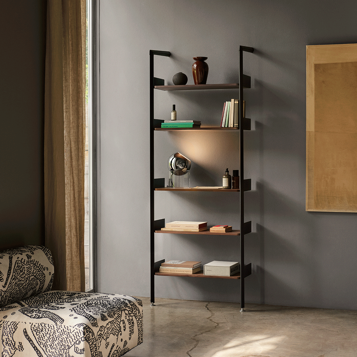 Systemet leveres i 11 ulike konfigurasjoner, og kan enkelt tilpasses og bygges ut med flere hyller og seksjoner etter hvert som behovene endrer seg. Resultatet er et fleksibelt hyllesystem som vokser og utvikler seg sammen med omgivelsene dine.