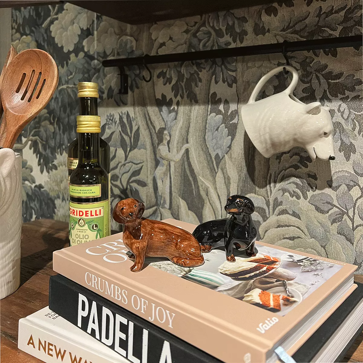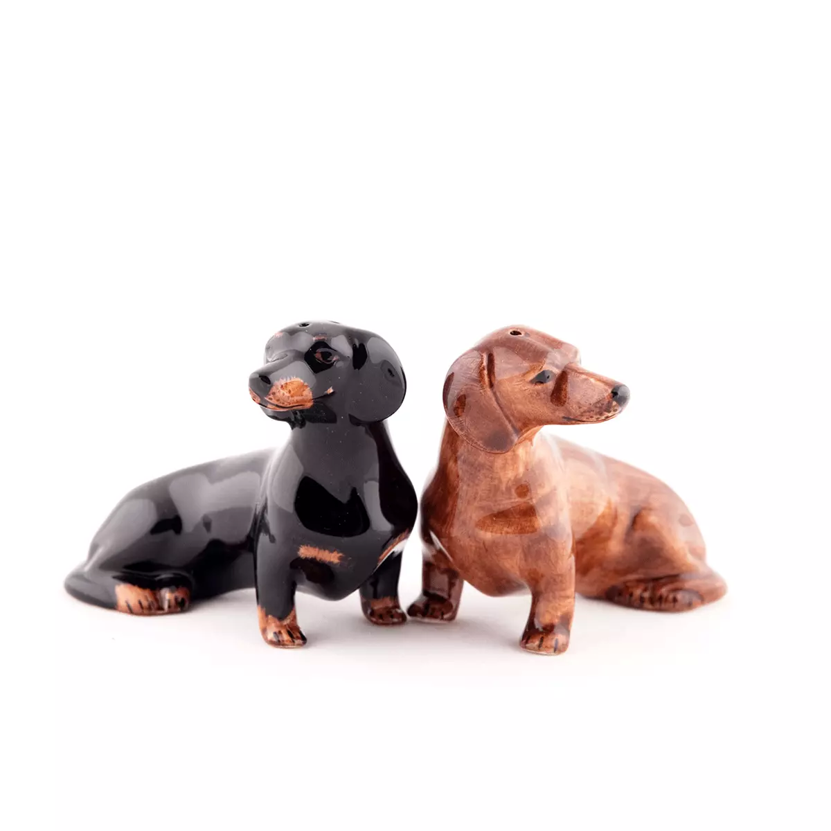 Salt- og Pepperbøsse Dachshund fra Quail Ceramics er et lekent og sjarmerende tilskudd til borddekkingen, formet som en langbent dachshund i håndmalt keramikk. Perfekt til å krydre måltidet med stil og humor, samtidig som den fungerer som et dekorativt element på bordet. Disse bøssene kombinerer britisk design med kvalitets håndverk, og tilfører hjemmet små, unike detaljer med sjel og personlighet