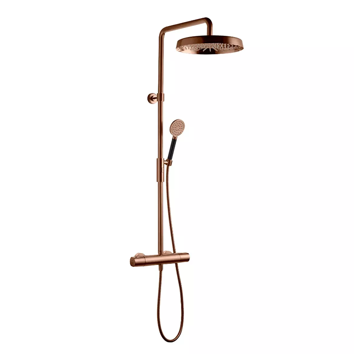 Oppgrader baderommet med Takdusj ARM7200 i Oksiderende Kobber med trykk- og termostatstyrt badekarbatteri – et komplett takdusjsett som kombinerer komfort, funksjonalitet og tidløs design. Den integrerte termostaten gir jevn og presis temperaturkontroll, mens trykkstyringen sikrer en stabil og behagelig dusjopplevelse. Med justerbar teleskopstang, svingbar tut med omkaster og praktisk hånddusj får du maksimal fleksibilitet i hverdagen. ARM7200 leveres i flere eksklusive overflater og er det perfekte valget for deg som ønsker en stilren, moderne og gjennomført dusjløsning på baderommet. Oksiderende Kobber er et overflatemateriale som vil endre seg. Overflaten er ubeskyttet og vil oksidere med tiden. Flekkene vil jevne seg ut etter hvert og gi produktet et rustikt utseende.