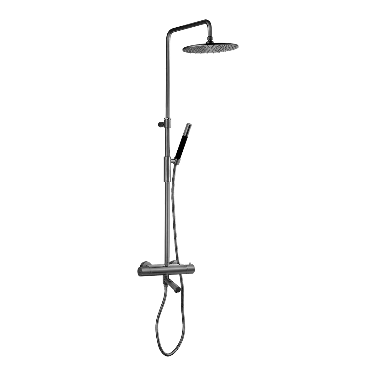 Oppgrader baderommet med takdusj TVM2200 i Brushed Black Chrome med trykk- og termostatstyrt badekarbatteri, utviklet for komfort og presis temperaturkontroll. Den integrerte termostaten sikrer jevn og behagelig vanntemperatur, mens teleskopstangen gjør det enkelt å justere høyden på taksilen. Med svingbar tut og praktisk omkasterfunksjon får du en fleksibel og stilren dusjløsning som kombinerer moderne design, høy kvalitet og maksimal brukervennlighet.