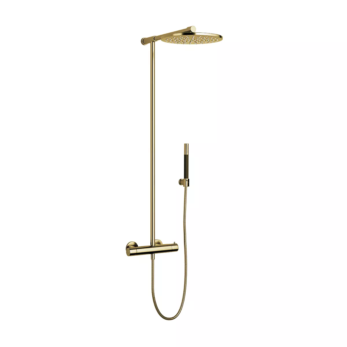 Takdusj TVM300 i Honey Gold fra Tapwell. En komplett takdusjsett med trykk- og termostatstyrt dusjbatteri og hånddusj. Dusjen har et elegant og tidløst uttrykk. Kommer i mange ulike overflater. Dusjen kan ikke justeres i høyden.