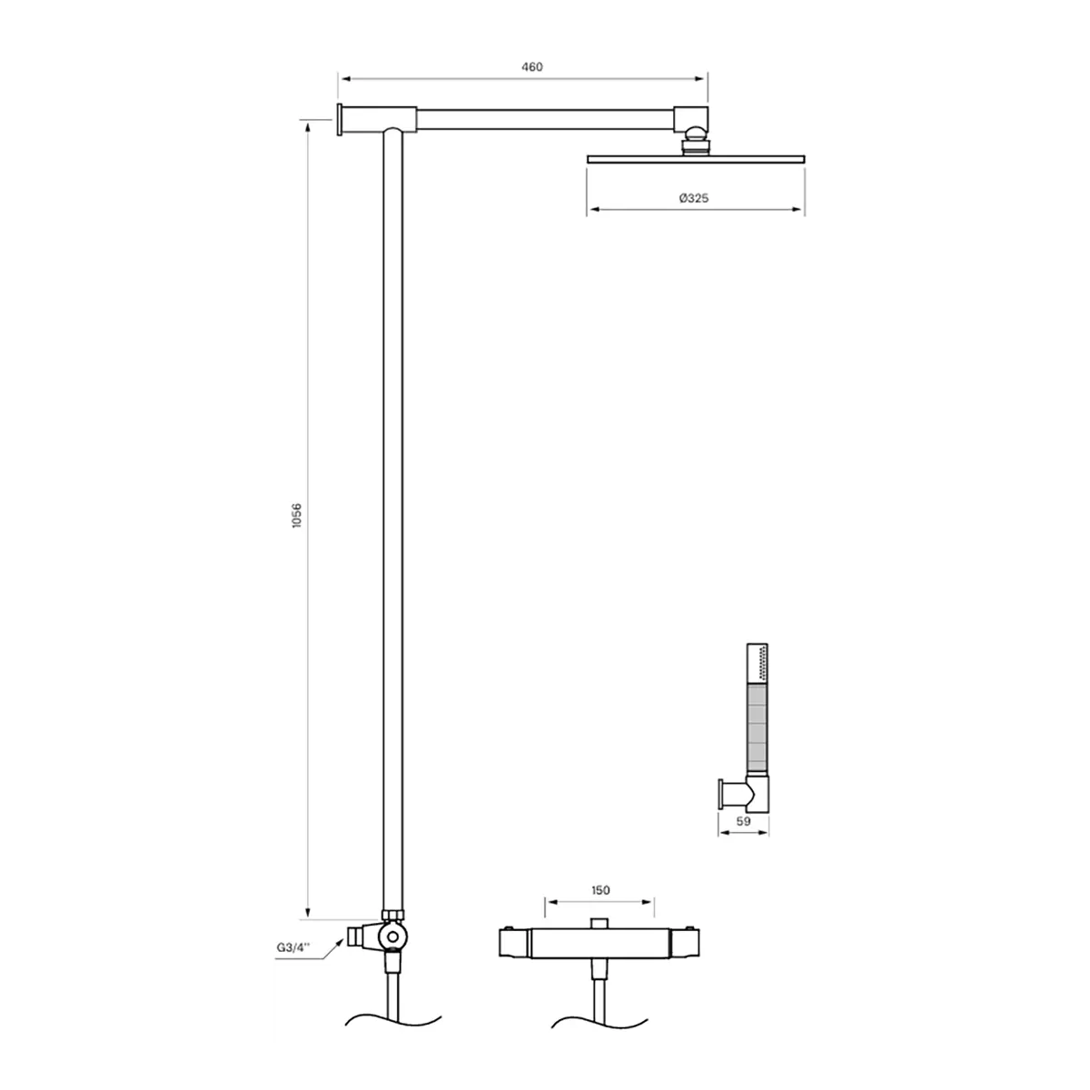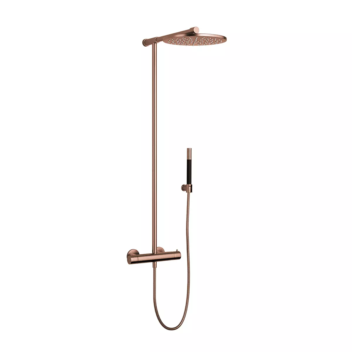Takdusj TVM300 i Oksiderende Kobber fra Tapwell. En komplett takdusjsett med trykk- og termostatstyrt dusjbatteri og hånddusj. Dusjen har et elegant og tidløst uttrykk. Kommer i mange ulike overflater. Dusjen kan ikke justeres i høyden.