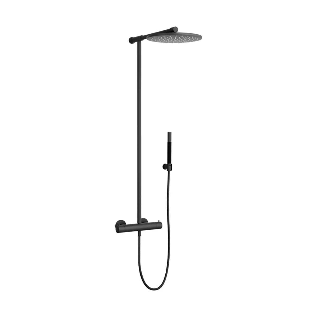 Takdusj TVM300 i Sort Matt fra Tapwell. En komplett takdusjsett med trykk- og termostatstyrt dusjbatteri og hånddusj. Dusjen har et elegant og tidløst uttrykk. Kommer i mange ulike overflater. Dusjen kan ikke justeres i høyden.