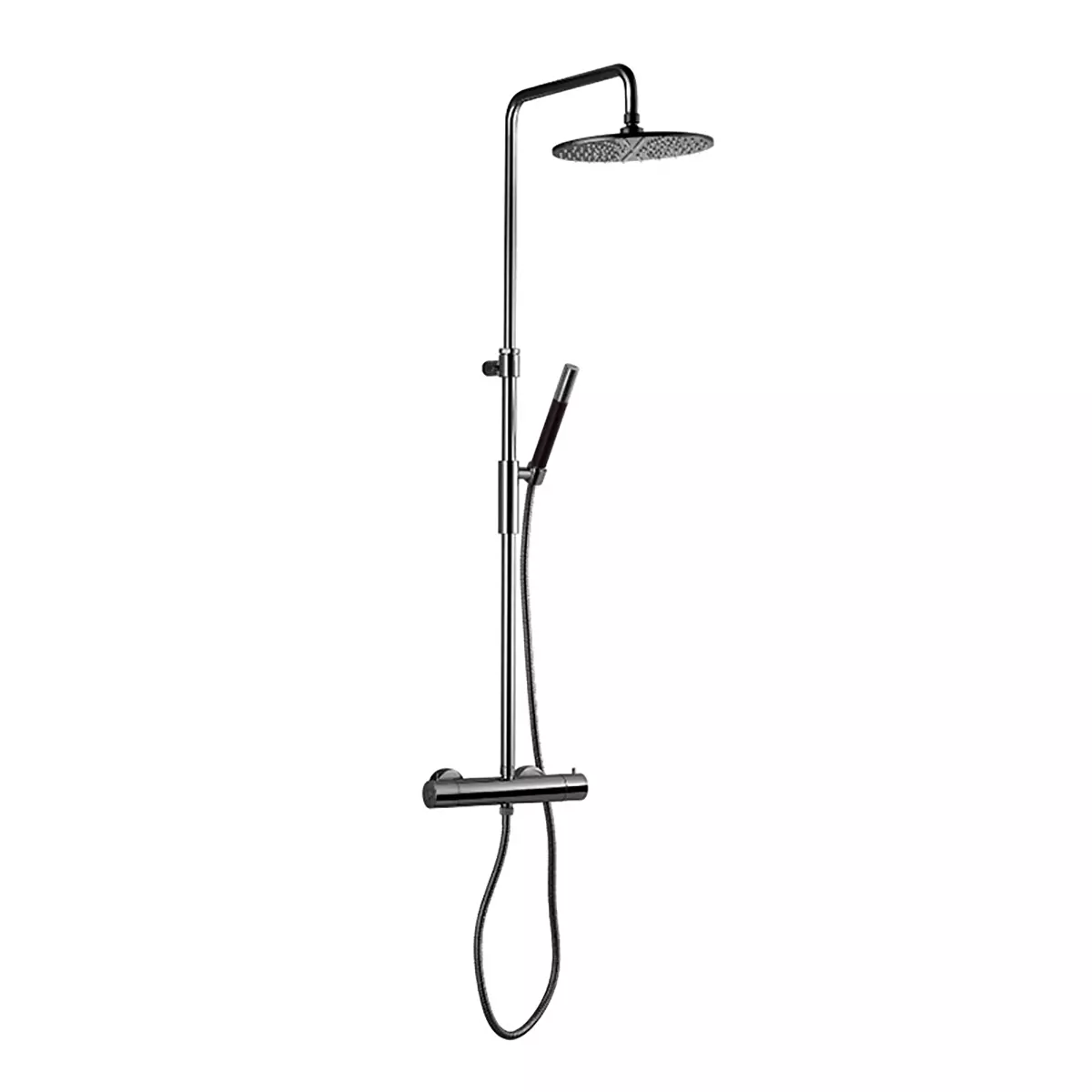 Opplev maksimal komfort med TVM 7200 i Black Chrome – en komplett takdusjløsning i tidløst og stilrent design, vår bestselger! Dusjen har trykk- og termostatstyrt dusjbatteri for jevn vanntemperatur og automatisk trykkstyring som gir stabilt vanntrykk selv på rørnett med mange tappepunkter. Den justerbare teleskopstangen (770–1225 mm), rund taksil (Ø250 mm) og medfølgende hånddusj gjør det enkelt å tilpasse dusjopplevelsen. Leveres komplett med dusjbatteri, taksil, hånddusj, dusjslange og justerbar festebrakett – et stilrent, funksjonelt og gjennomtestet valg for ethvert moderne baderom.